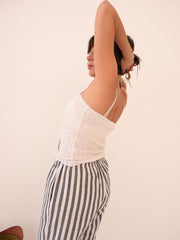 We love this beautiful yarn-dyed stripe linen cotton blend fabric. This linen-cotton blend merges the strengths of both fibers for a lightweight, airy textile. Linen, made from flax plant fibers, is eco-friendly, durable, antibacterial, and improves with each wash. Cotton, derived from natural fibers, adds comfort and softness. Perfect for warm weather this fabric also works all year round.