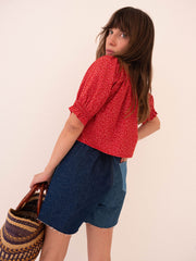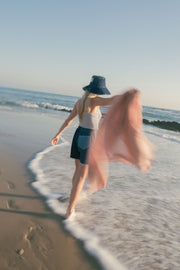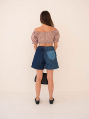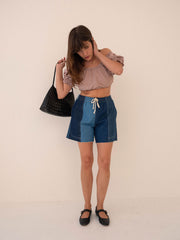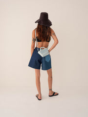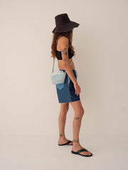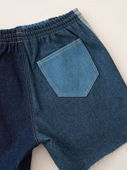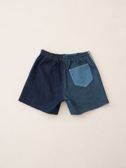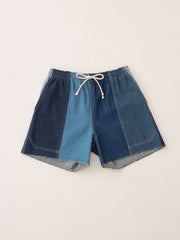Our signature vacation-ready short, reimagined in a one-of-a-kind patchwork of indigo denim shades. Each pair is made from upcycled denim saved from past collections—giving new life to special fabrics while creating something totally unique.