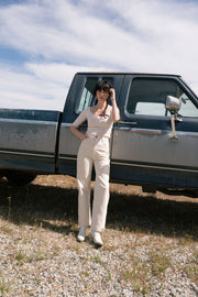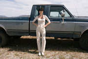 Inspired by our favorite painter pant, but refined with a clean, tailored silhouette, this style is all about effortless structure and perfect details. We removed the extra pockets for a more polished look and added a waist-cinching detail that subtly shapes and flatters. The straight waistband sits perfectly at your natural waist, while the relaxed fit through the hips and legs creates an easy, balanced shape.